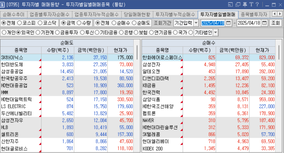 순매도는 반도체, 조선, 방산, 2차전지를 순매도함.