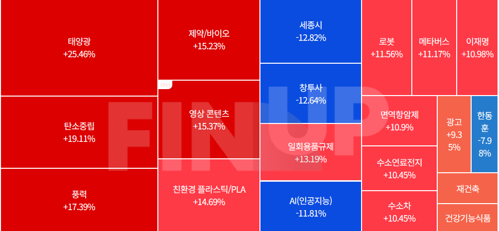 친환경관련주, 수소관련주 등이 상한가 마감함.
