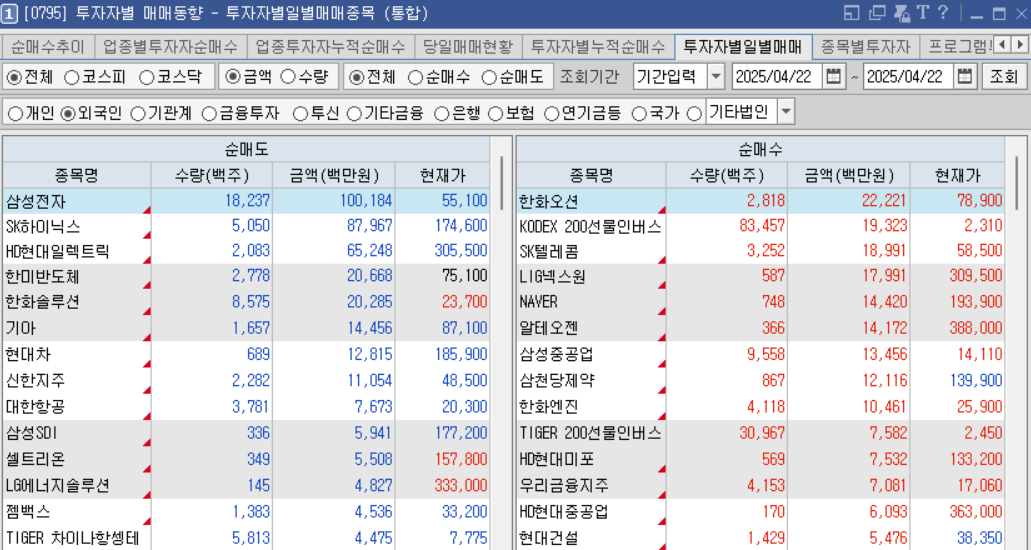 외국인. 기관 순매수 상위 종목