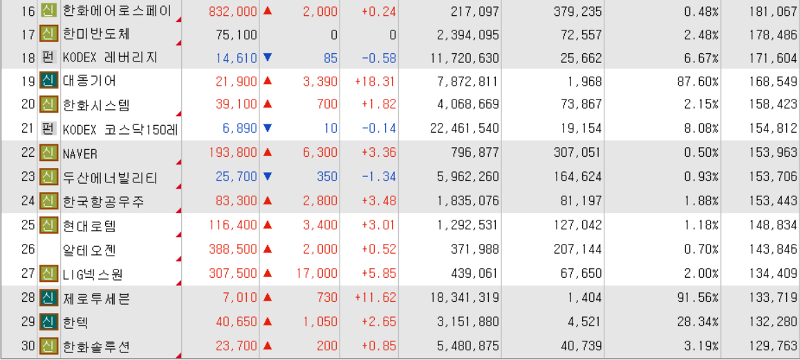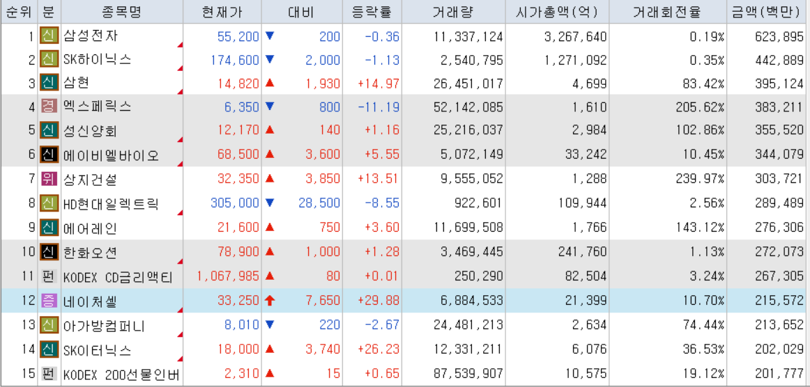 오늘의 거래대금 상위 종목