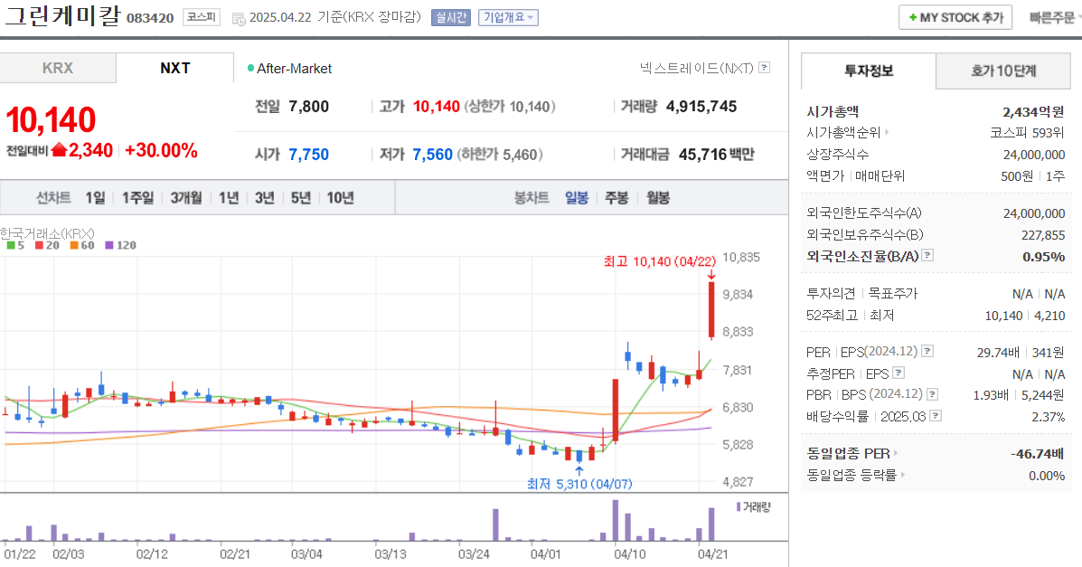 오늘의 주식 시장 정리(4월 23일 주식 상한가 종목 및 특징주) (5) | 2025.04.23 |