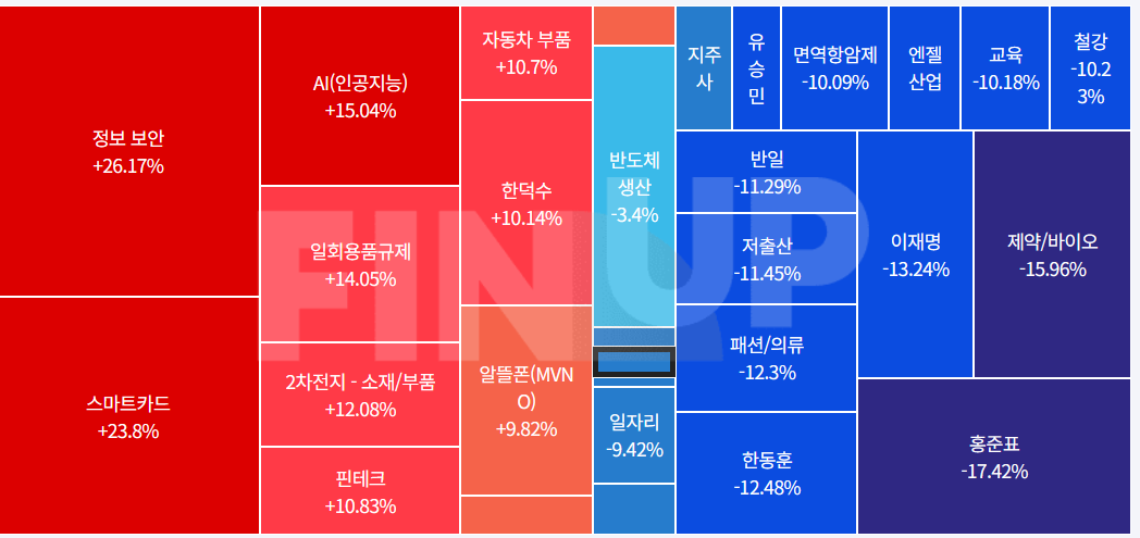 보안주 = 한싹(상), 모니터랩(27.31%), 인스피언(20.65%), 샌즈랩(14.37%)