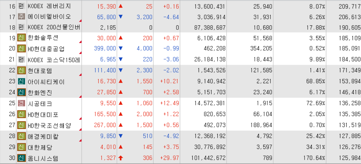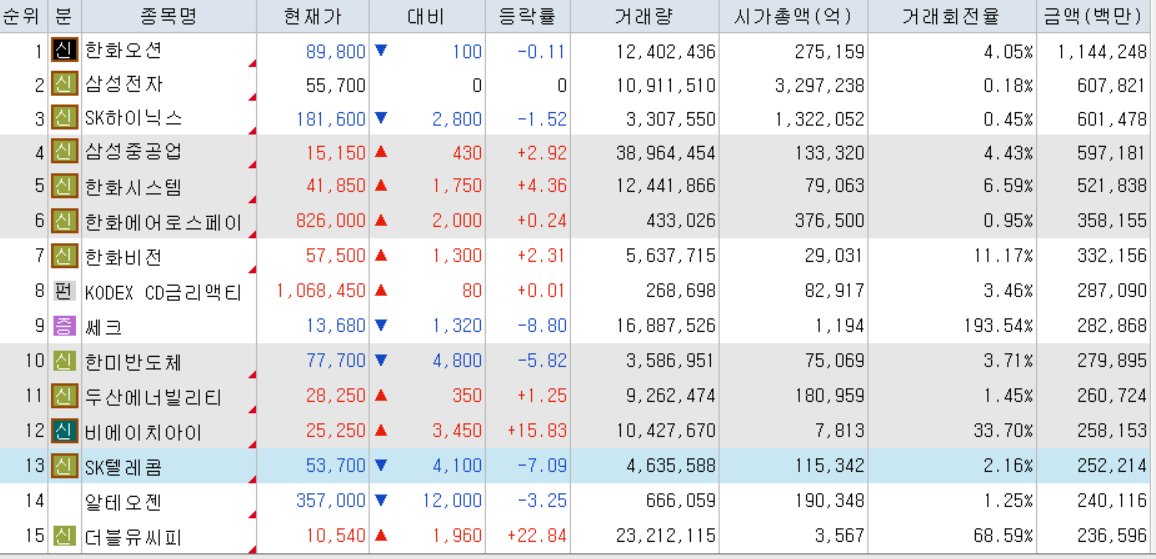 오늘의 거래대금 상위 종목