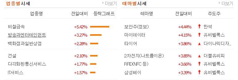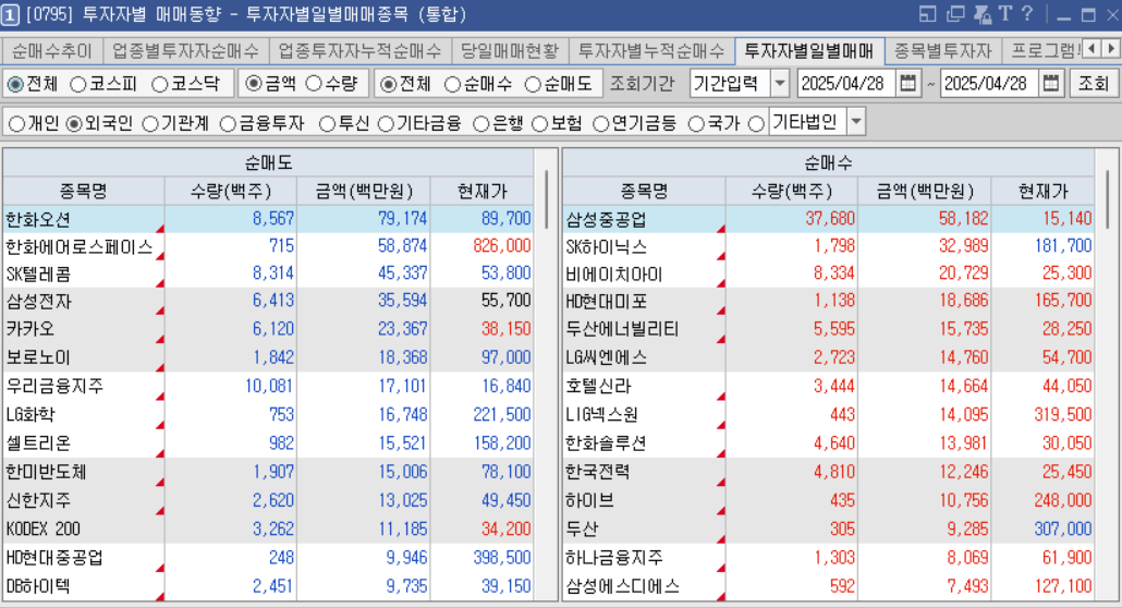 오늘 외국인 순매수는 조선, 원전, 전력, 금융, 유통, 엔터를 순매수
