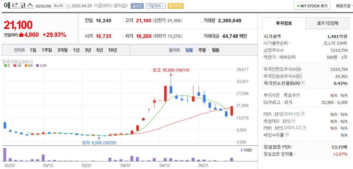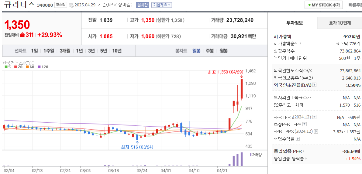 오늘의 주식 시장 정리(4월 29일 주식 상한가 종목 및 특징주)