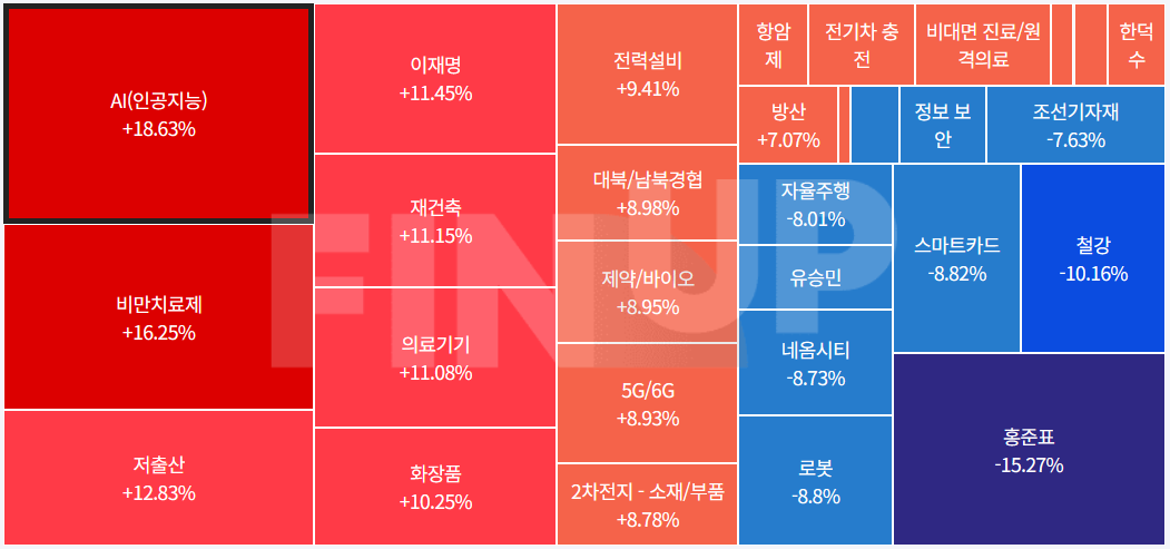 오늘의 특징주 섹터는 AI 관련주, 비만치료제, 화장품, 저출산테마, 개별이슈 등임