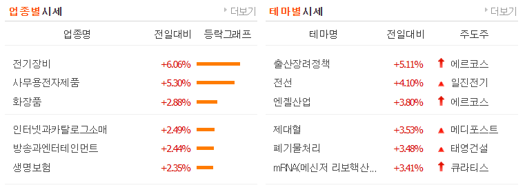시가총액 상위 종목에서는 2차전지, 자동차, 제약바이오, 금융, 조선, 인터넷 등이 상승을 했고