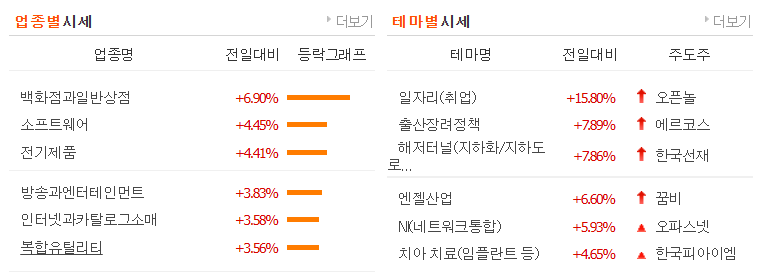 오늘의 특징주 섹터는 대선 정치 테마주, 개별이슈임(정책테마주)