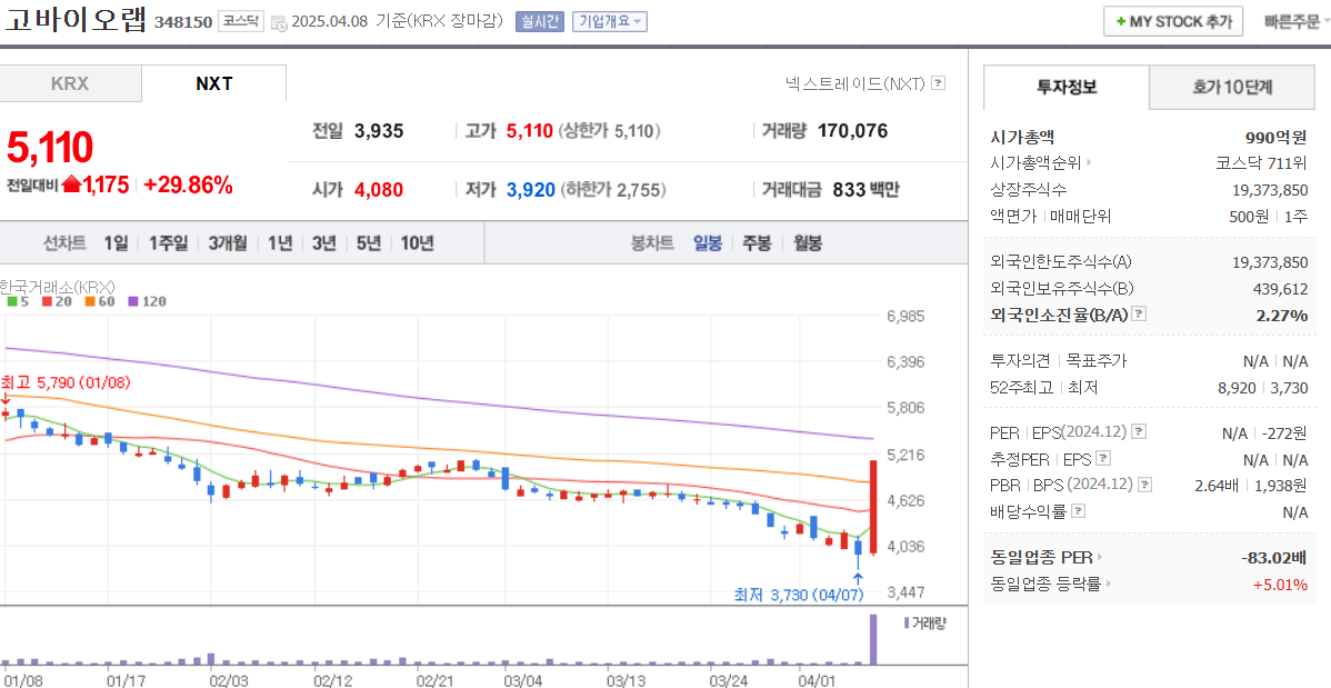 | 오늘의 주식 시장 정리(4월 4일 주식 상한가 종목 및 특징주) (2) | 2025.04.04 |