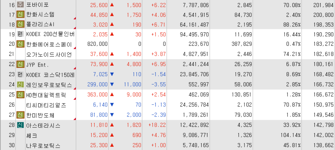 거래대금은 7조 7864억 원으로 코스피 거래대금 보다 많아졌음.