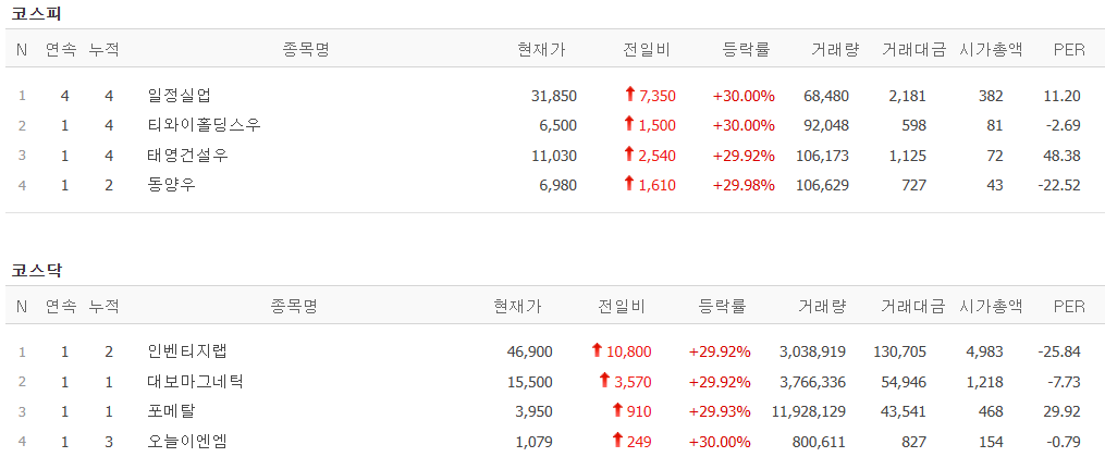 | 오늘의 주식 시장 정리(4월 30일 주식 상한가 종목 및 특징주) (2) | 2025.04.30 |
