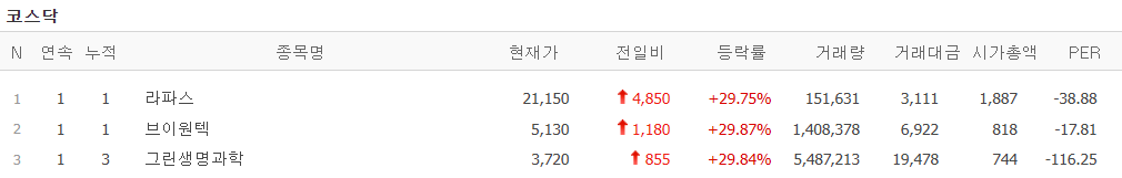 제약바이오= 라파스(상), 인투셀(28.61%), 인벤티지랩(10.94%), 네이처셀(8.86%), 한미약품(5.14%)