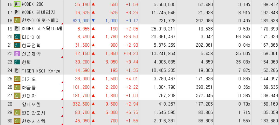 거래대금은 8조 2629억 원으로 전 거래일보다 소폭 줄어듦.