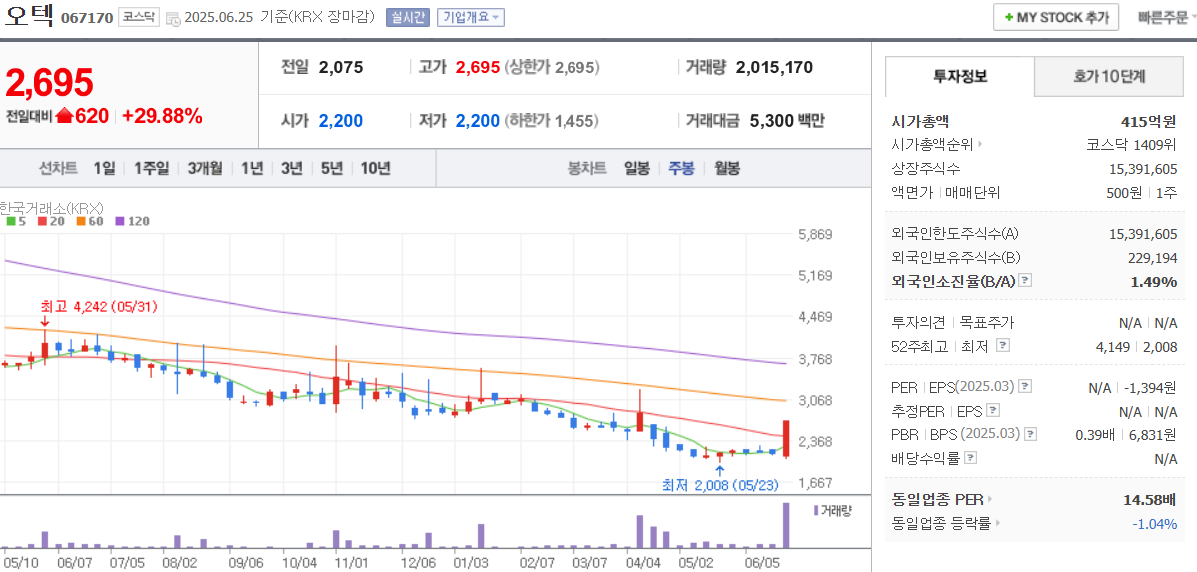 | 2 | 오텍 | +29.88% | 53 | 유상증자 권리락 효과 | -4 | -6 | +2 |