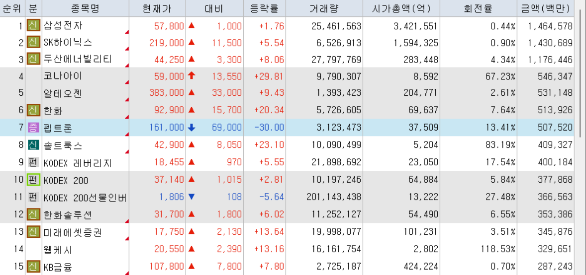 오늘의 거래대금 상위 종목