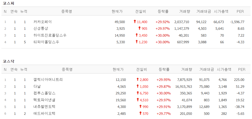 일단 정부정책이슈로 스테이블 코인 이슈로 인해 관련주가 크게 상한가 마감. 그 외 제약바이오 상한가.