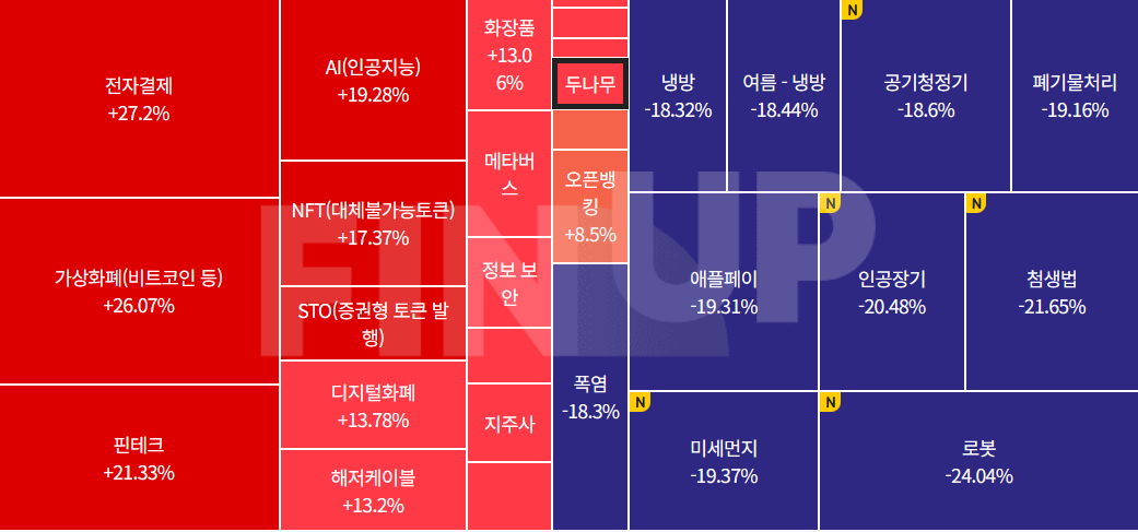 카카오그룹주 =카카오페이(상), 카카오뱅크(20.21%), 카카오(16.03%), 카카오게임즈(5.17%)