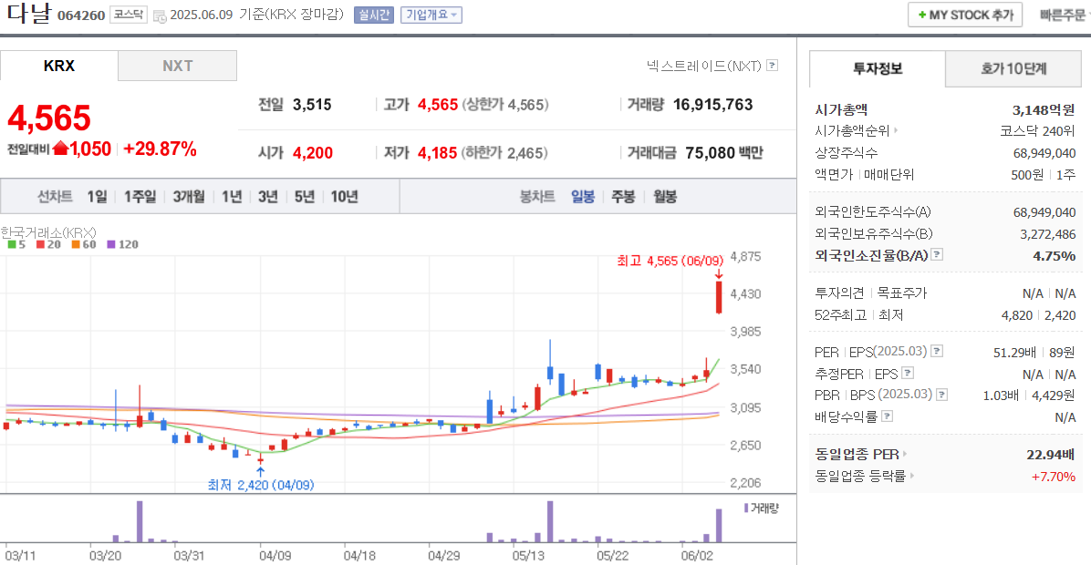 | 오늘의 주식 시장 정리(6월 4일 주식 상한가 종목 및 특징주) (6) | 2025.06.04 |