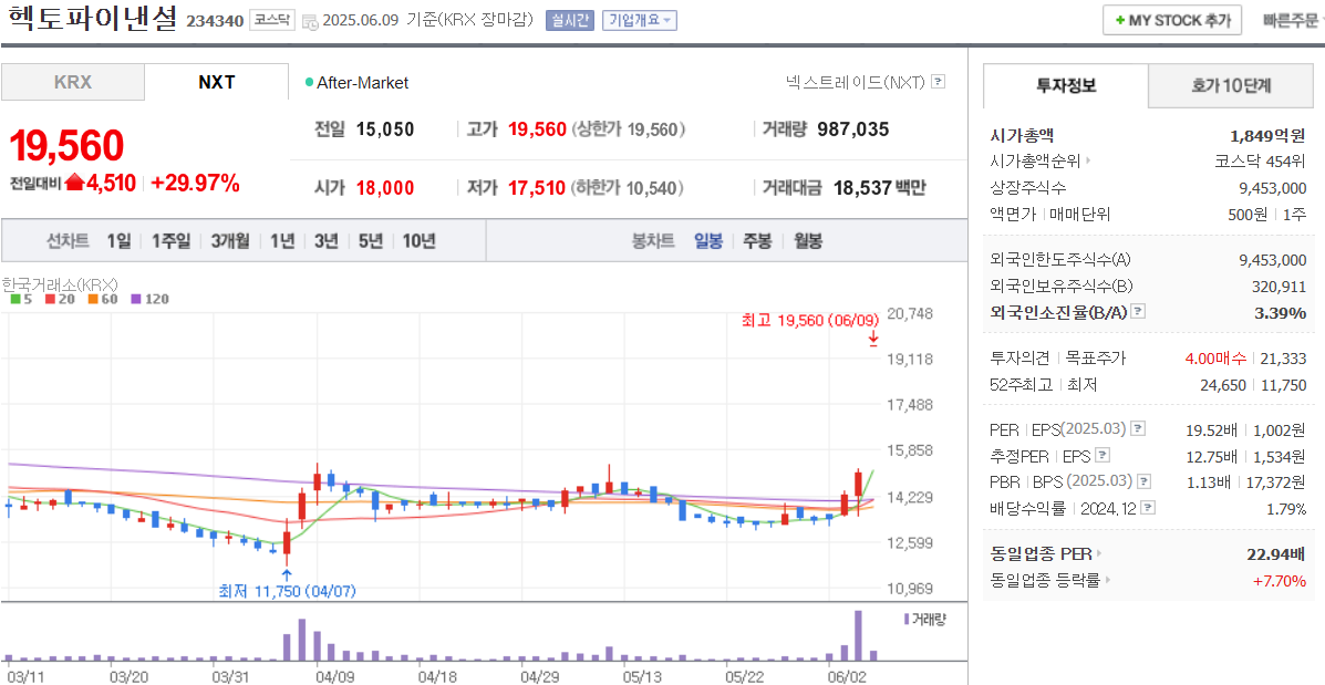 금융서비스를 추진 중. 오늘 이종목도 52주 신고가를 경신하면서 상한가 마감함.