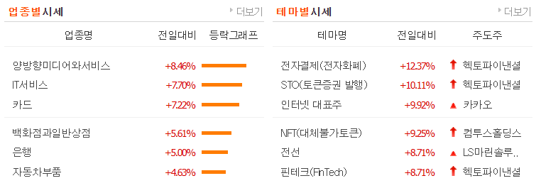 오늘 특징주 섹터는 STO, 지주사, 카카오 그룹주, LS그룹주, AI관련주, 개별 이슈 등임
