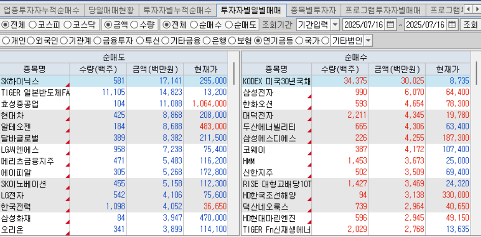 연기금 순매수는 반도체, 원전, 조선, 금융, 해운 등을 순매수
