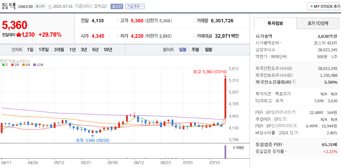 오늘의 주식 시장 정리(7월 16일 주식 상한가 종목 및 특징주)