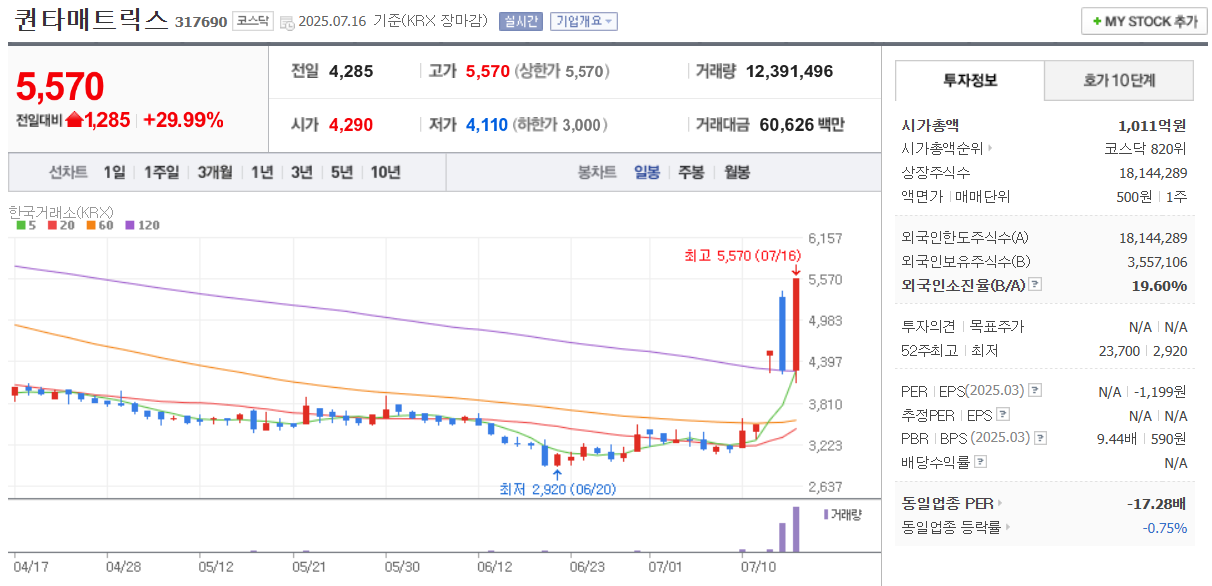 마감시킴. 오늘 상한가 이유로는 차세대 패혈증 진단기 개발 이슈와 국책 연구 사업 수주 이슈에