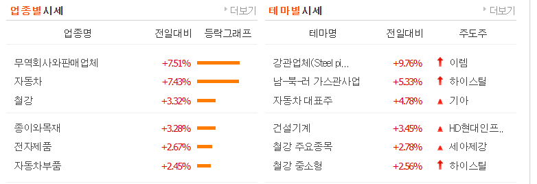 자동차 섹터, 알래스카 LNG 테마가 수급동반 강세로 상승함.