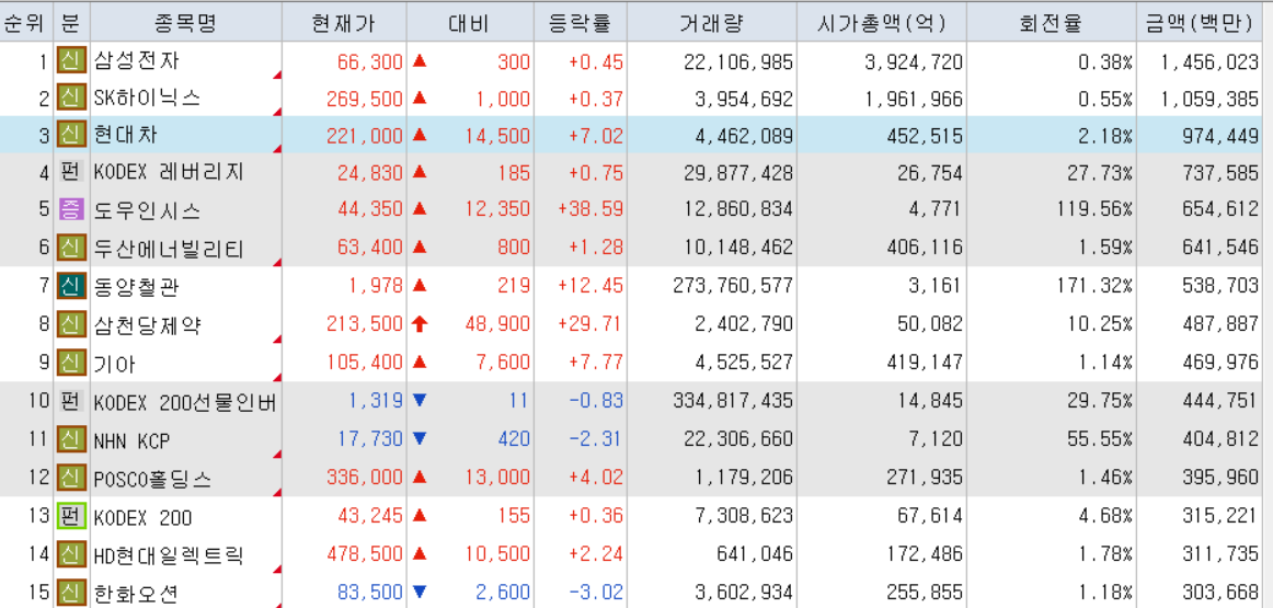 오늘의 거래대금 상위 종목