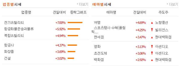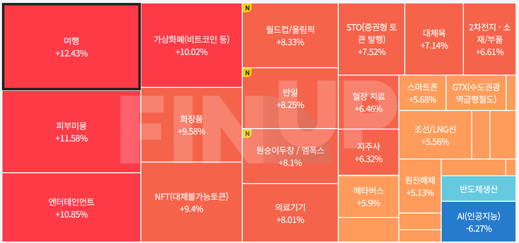오늘의 특징주 섹터는 화장품, 여행, 2차 전지, 개별 이슈 등