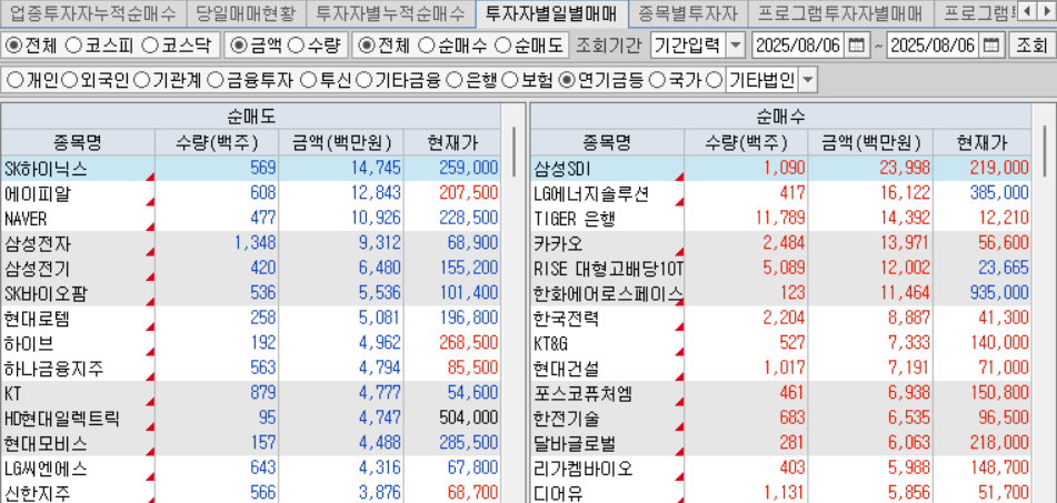 연기금 순매수는 2차전지, 인터넷, 전력, 원전, 제약바이오, 화장품을 순매수