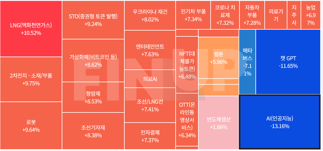 시가총액 상위 종목에서는 반도체, 2차 전지, 제약바이오, 원전, 자동차, 금융, 전력 등이 상승마감.
