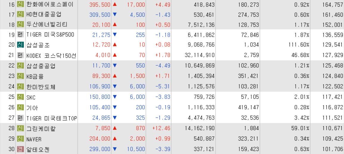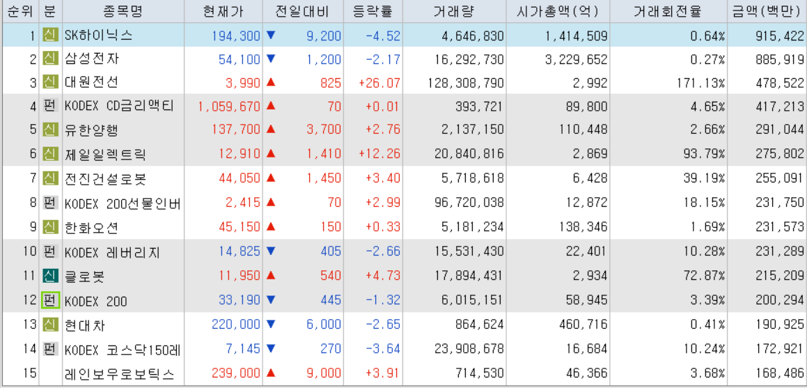 오늘의 거래대금 상위 종목