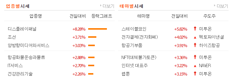 스테이블코인 이슈, 실적이슈종목들만 상승을 보였습니다.