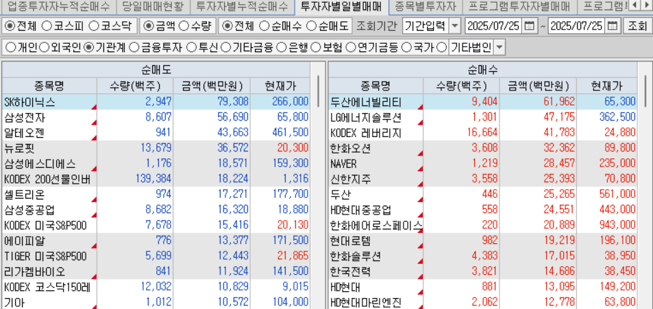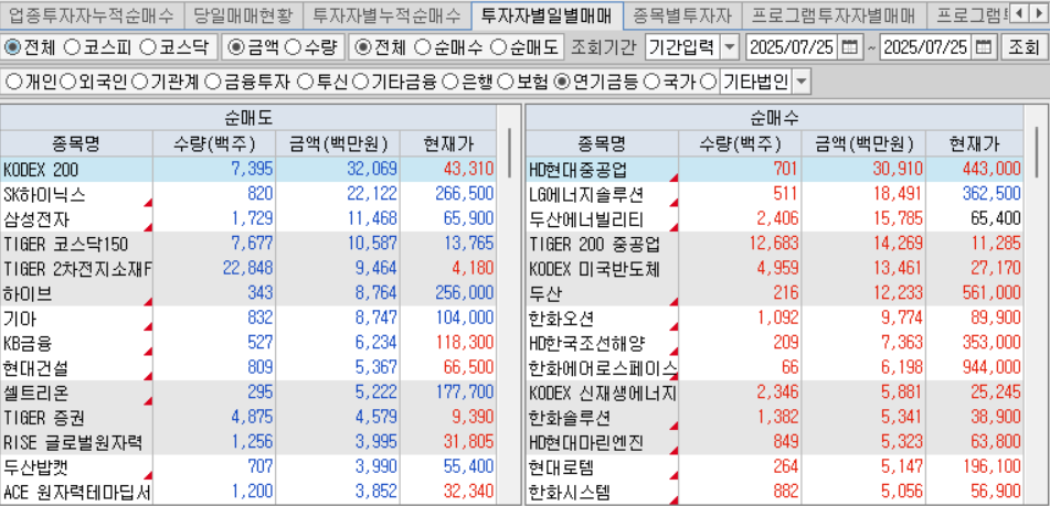 기관 연기금 순매수는 원전, 조선,방산, 2차 전지, 조선기자재 등을 순매수