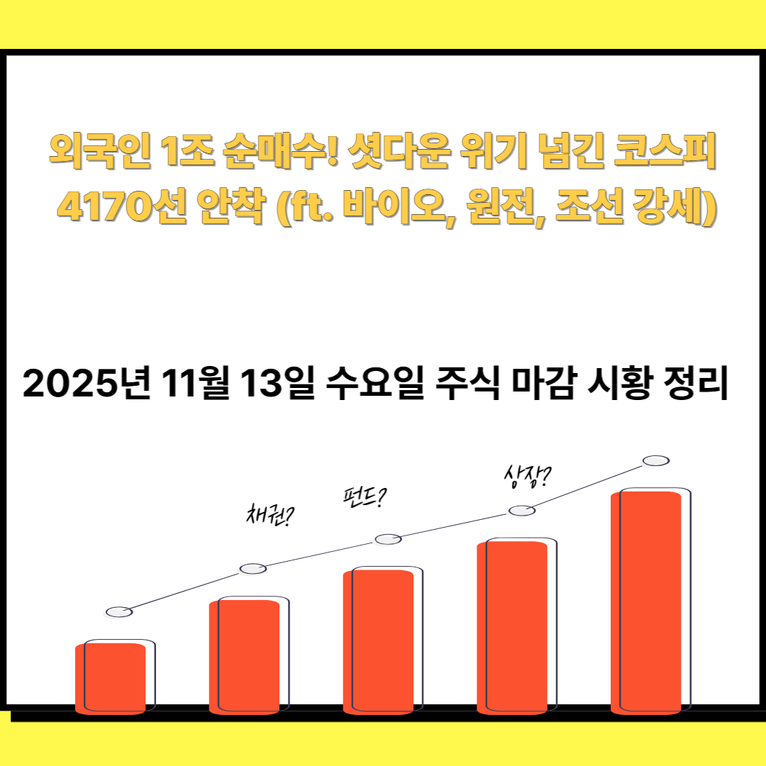2025년 11월 13일 목요일, 수능일 증시가 마감되었습니다. 수능으로 인해 1시간 늦게 개장했던 오늘 시장,