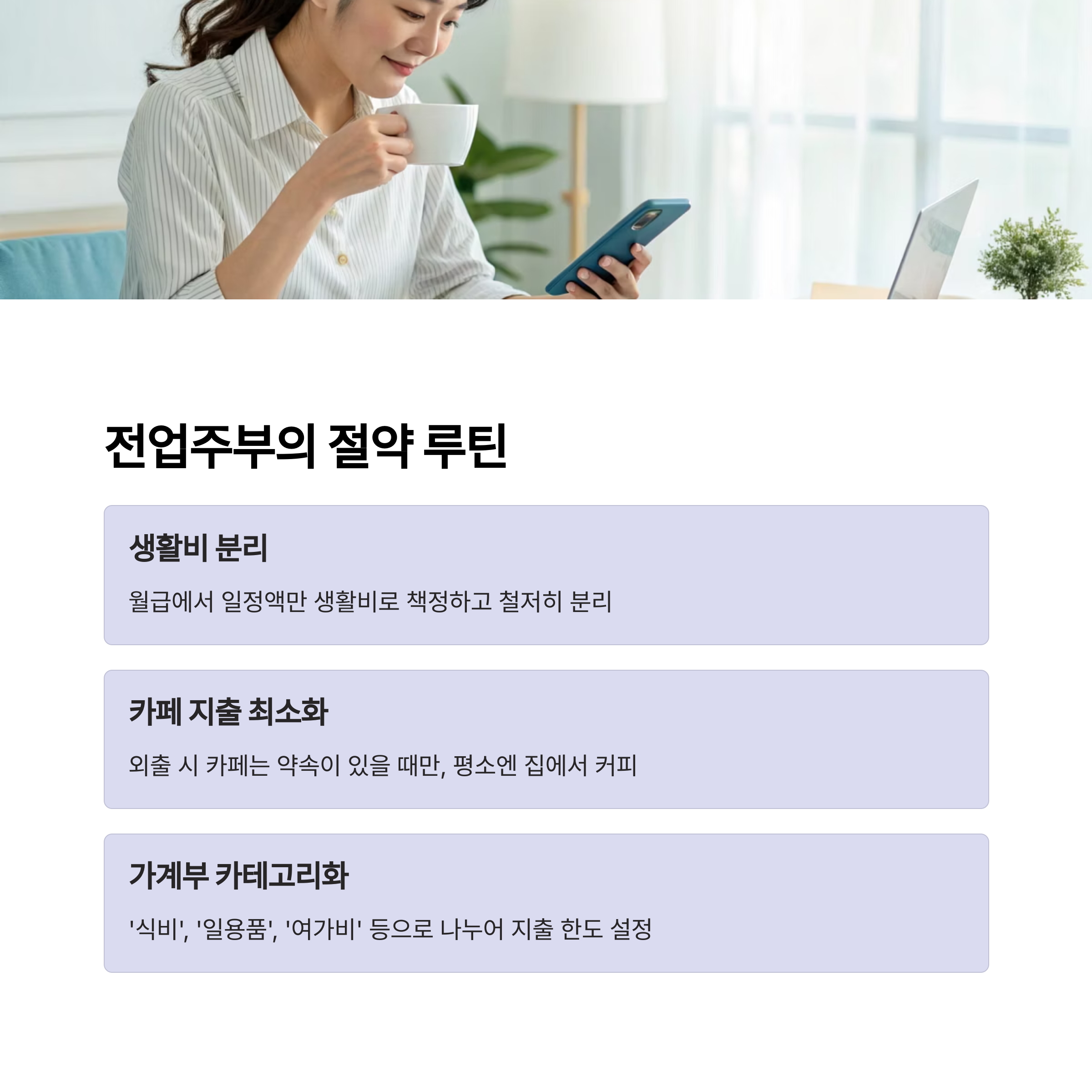 - 외출 시 카페 이용은 약속이 있을 때만, 평소엔 집에서 커피