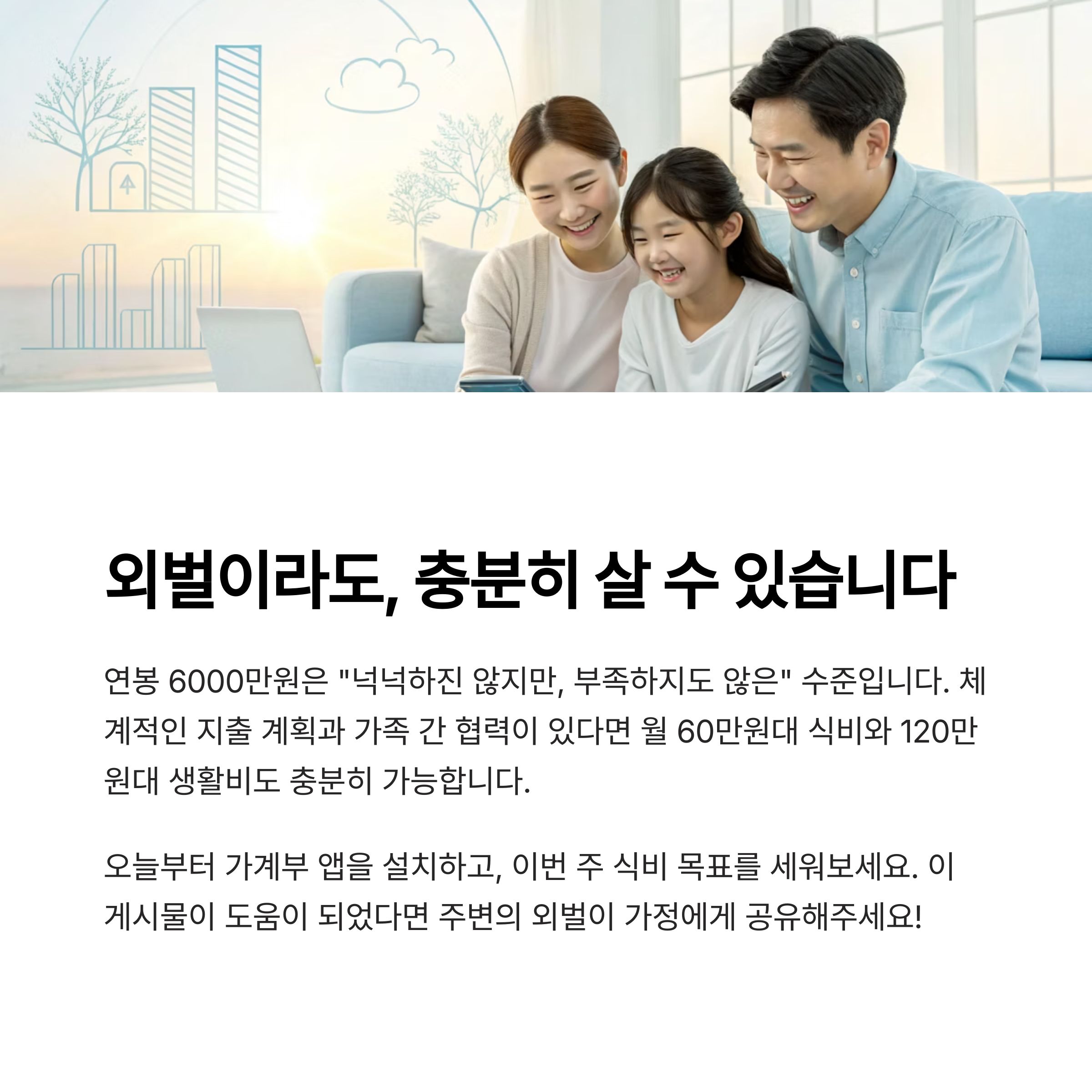 외벌이 3인가족 연봉 6000만원, 생활비 현실은?