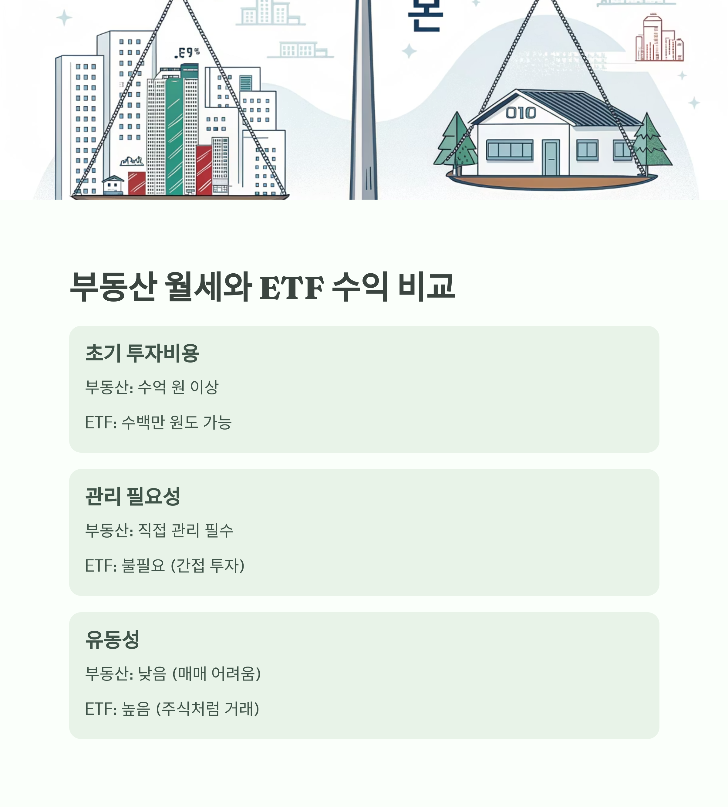 "월세 대신 ETF"는 소액 분산투자와 유동성에서 확실한 우위를 가집니다.