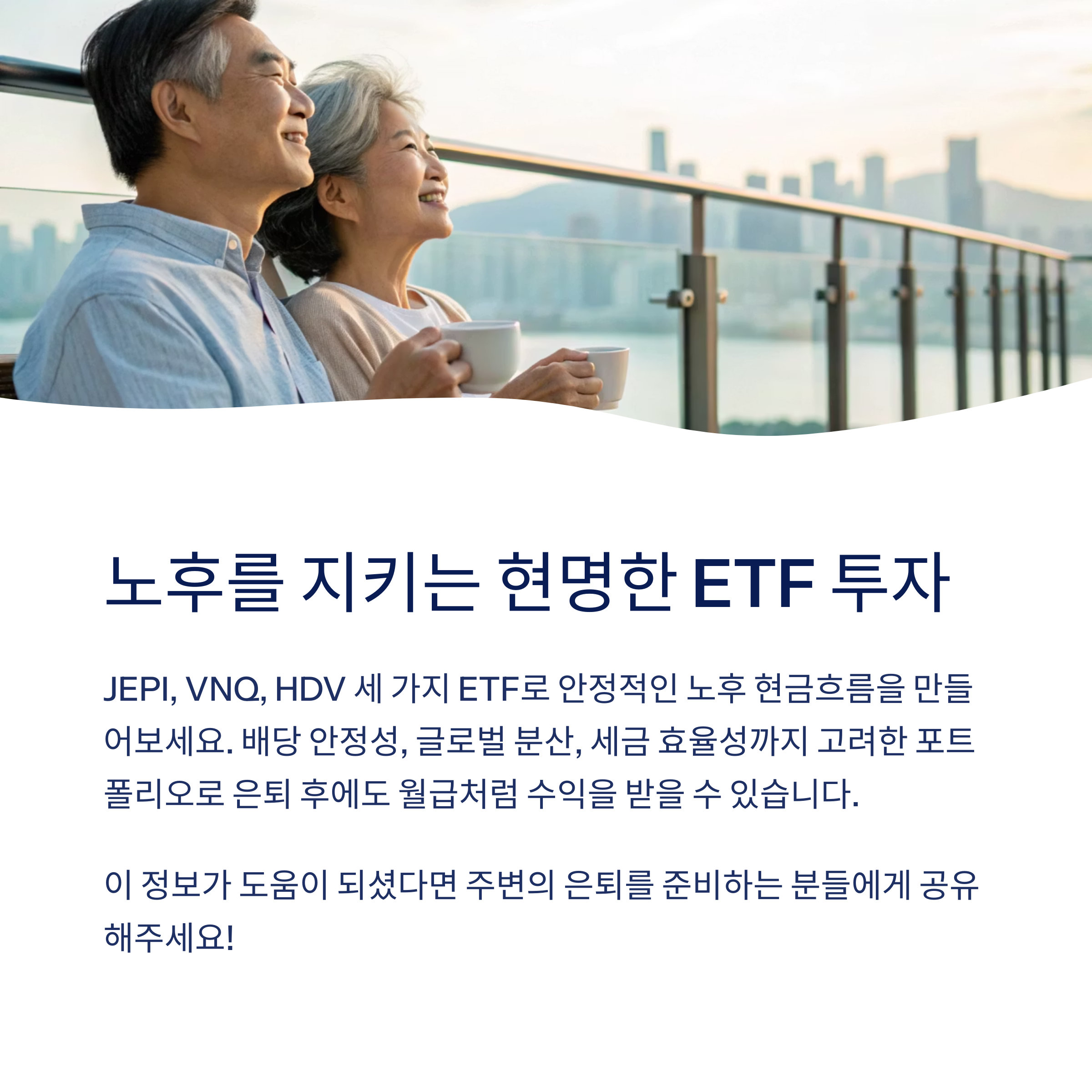 배당 안정성, 글로벌 분산, 세금 효율성까지 고려한 구성을 통해 안정적인 노후 재정을 설계해봅니다.