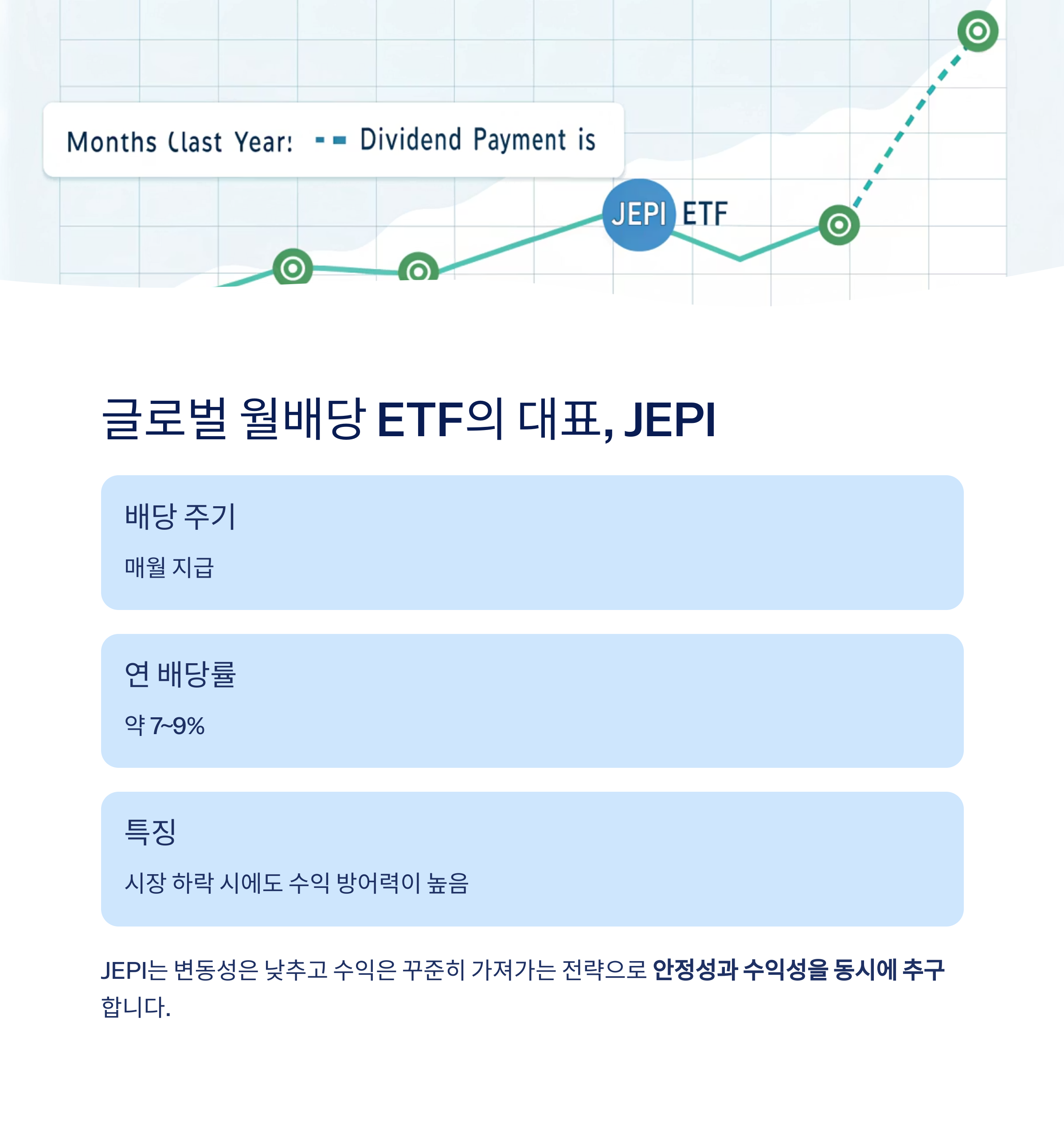 JEPI | 매월 | 7~9% | 옵션 전략으로 월배당 실현 |