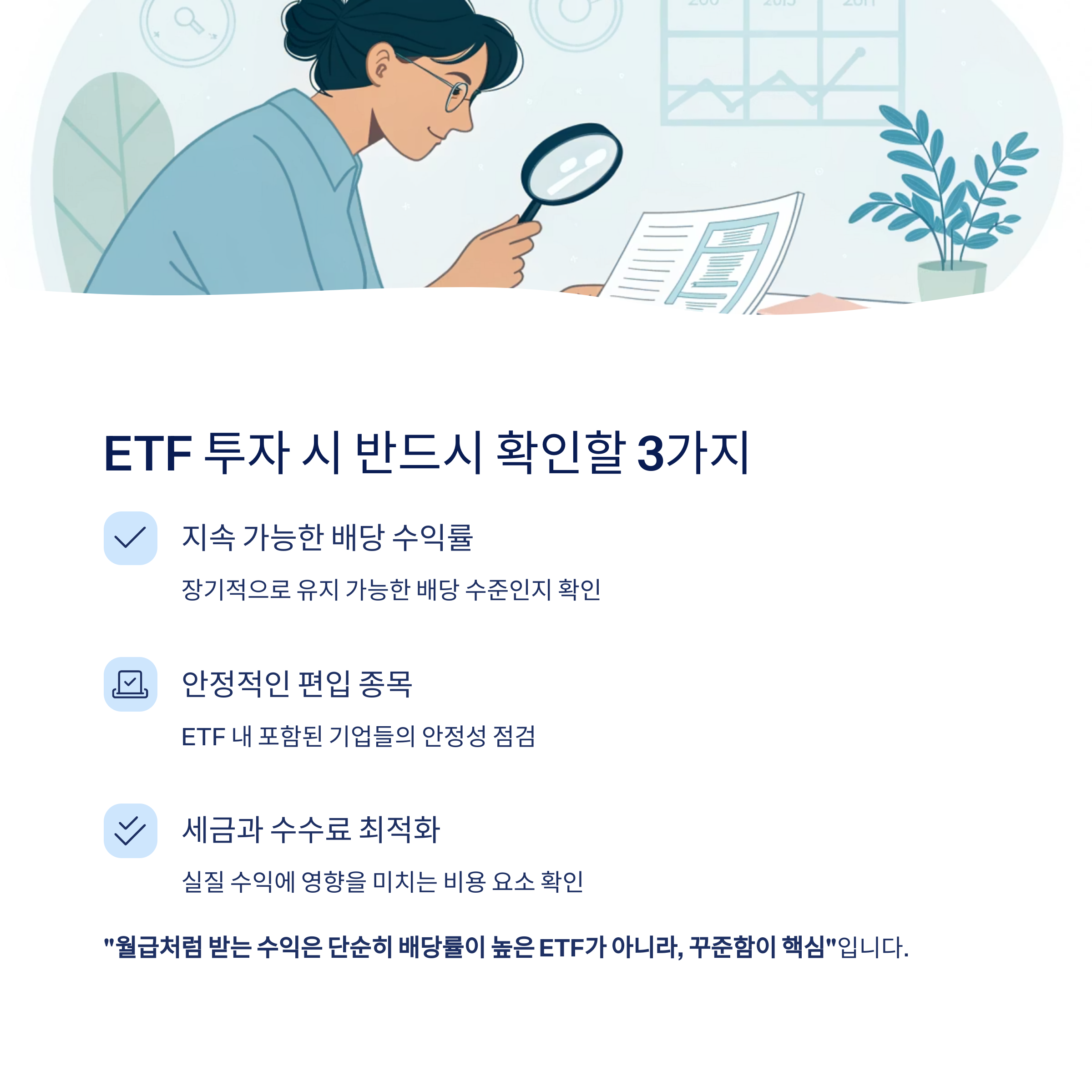 "월급처럼 받는 수익은 단순히 배당률이 높은 ETF가 아니라, 꾸준함이 핵심"이라는 점을 명심해야 합니다.