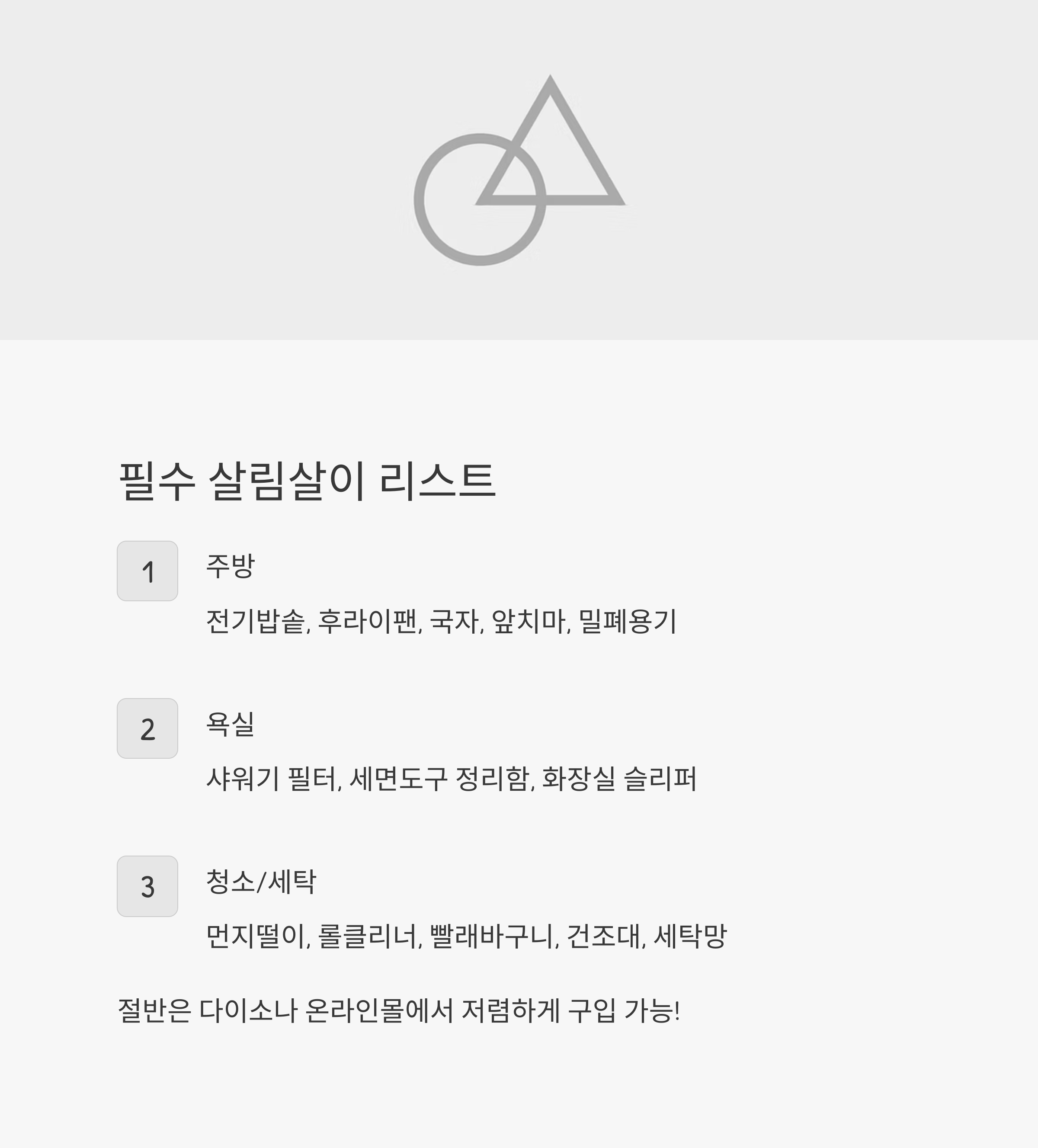 그래서 필수품 위주로 구성한 기본 살림 리스트부터 체크해 보세요.