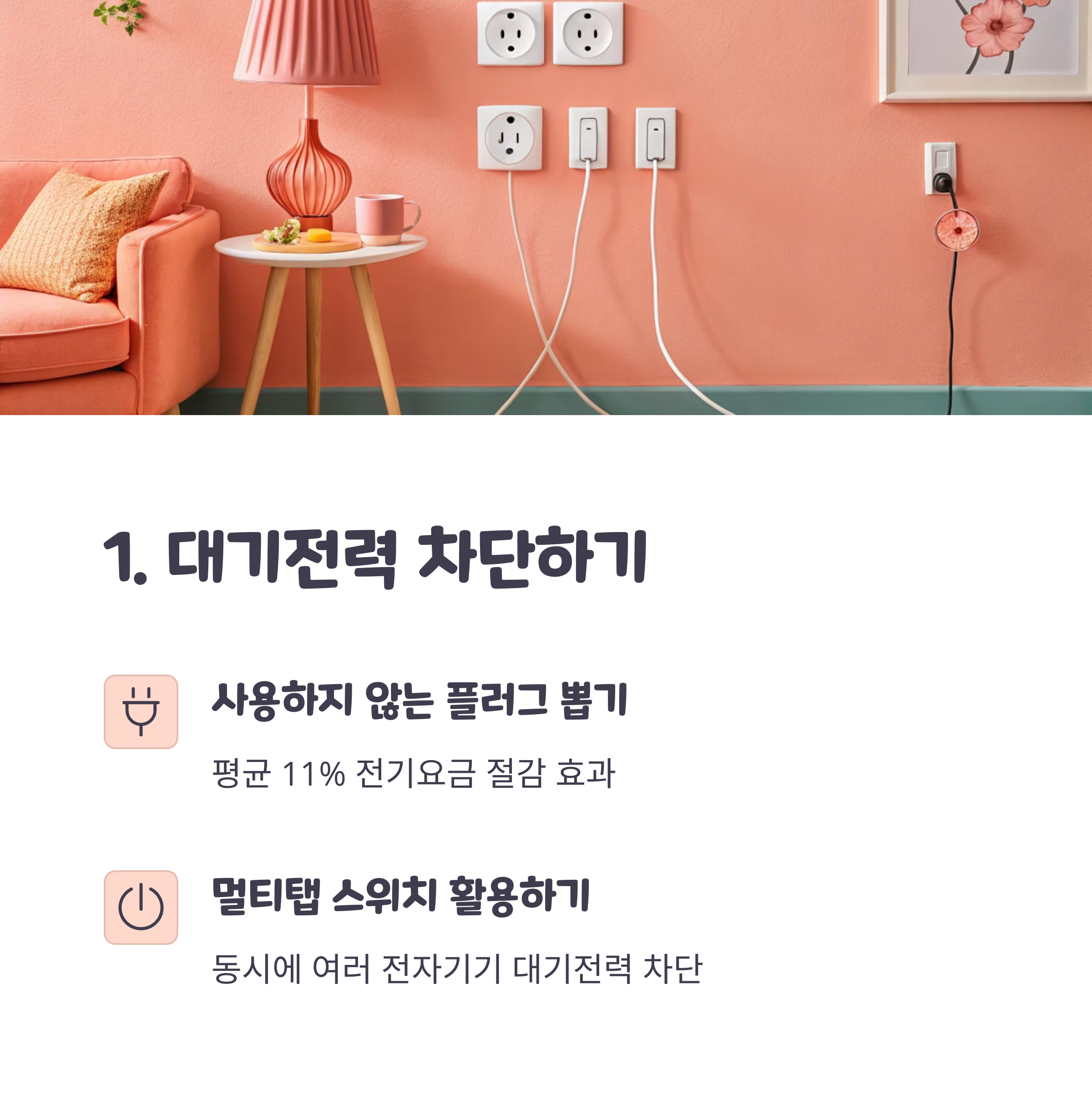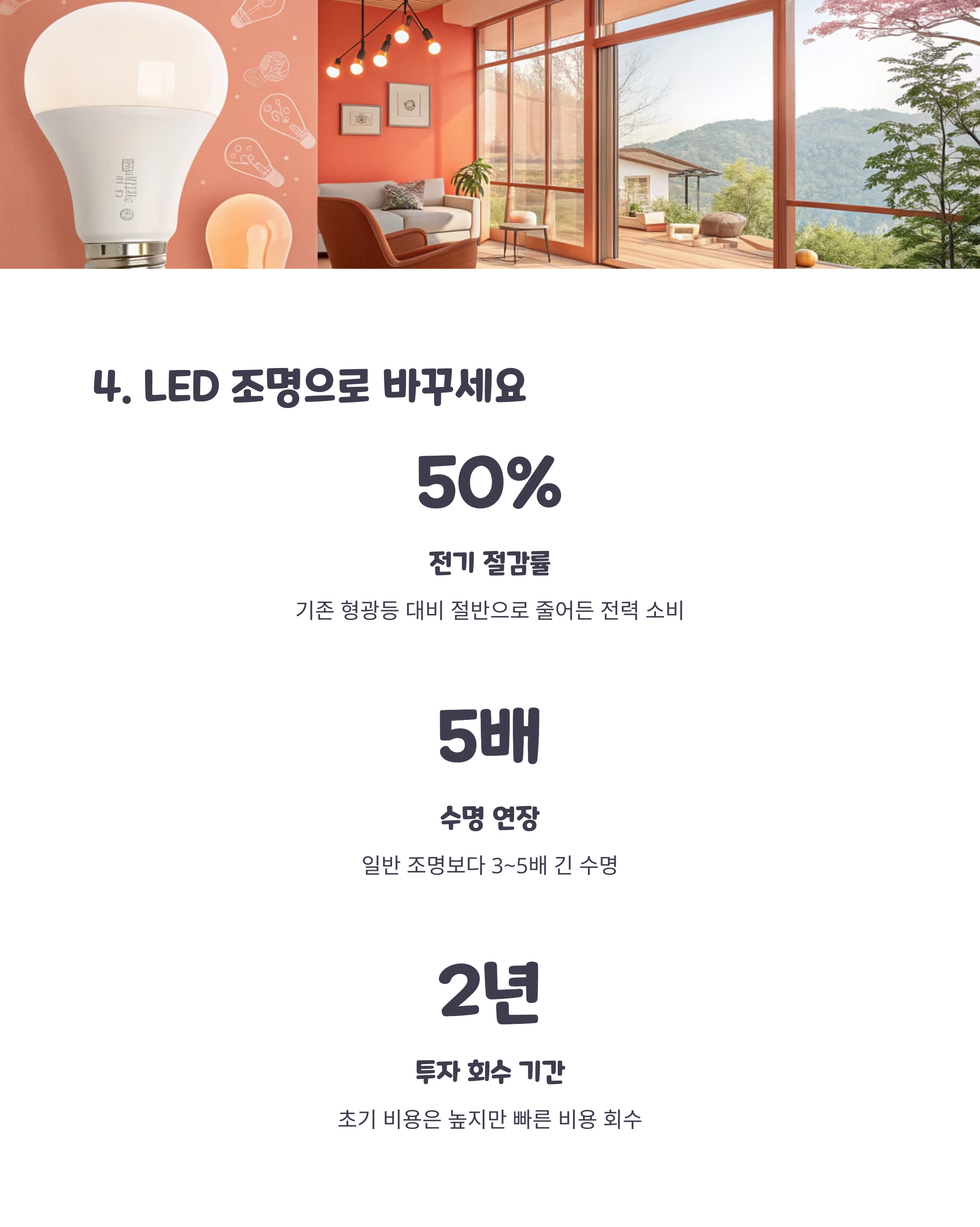 오늘부터 작은 것부터 실천해보세요. 전기요금은 줄고, 지구는 살리는 멋진 생활이 시작될 수 있습니다!