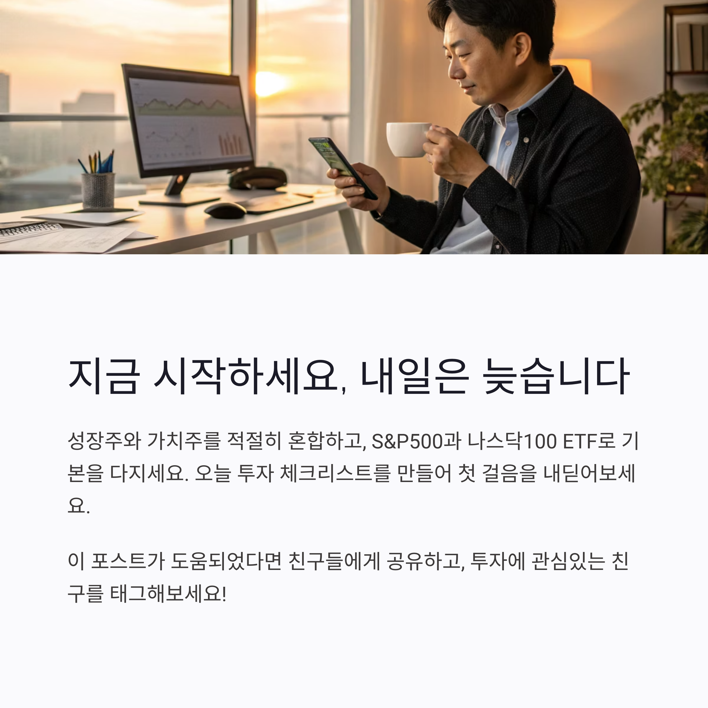 - 3. ETF 우선 매수: 개별 종목보다 S&P500, QQQ 같은 ETF는 급락 후 회복 속도가 빠르고 리스크가 적습니다.