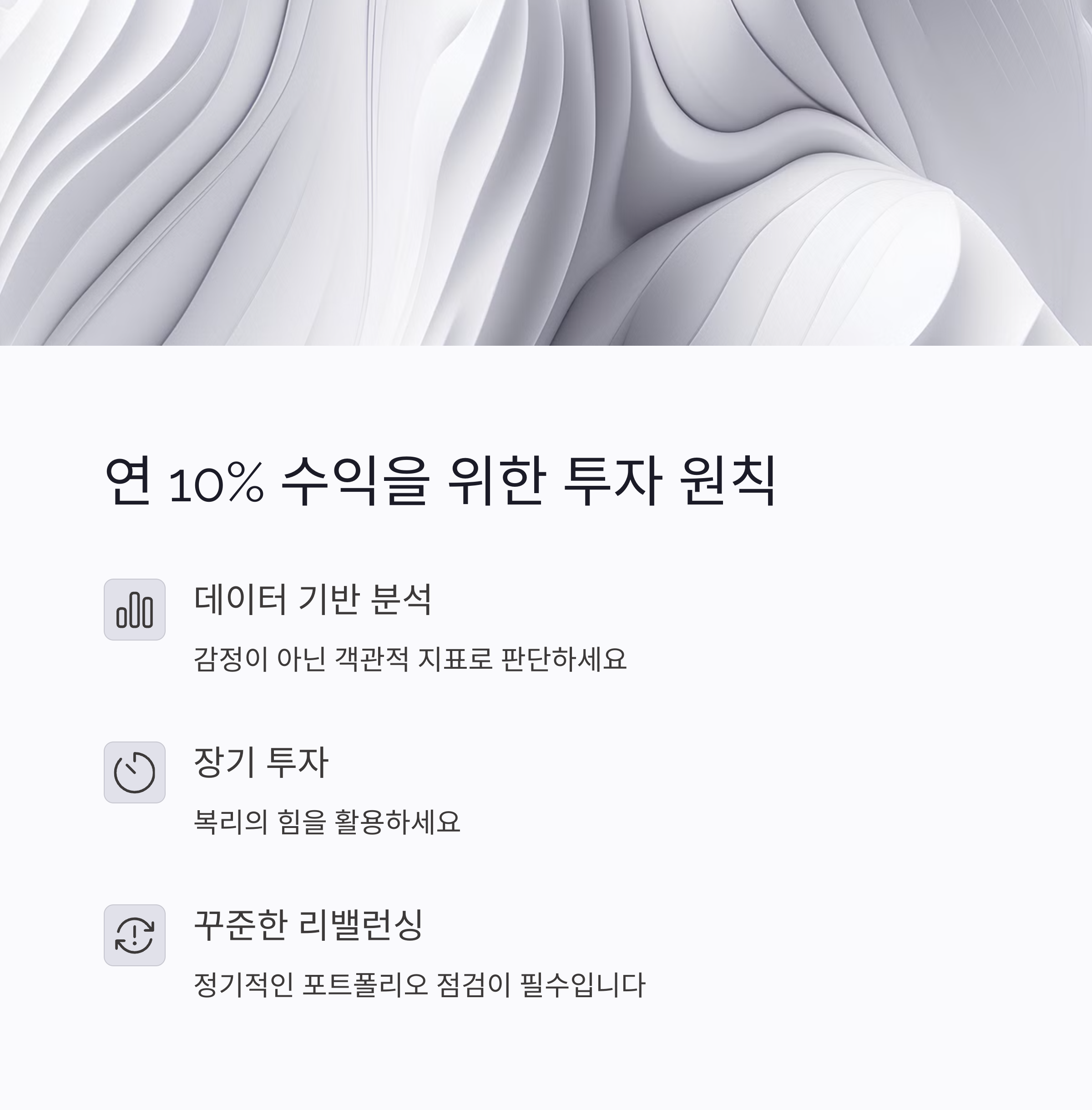 이러한 리스크 관리 전략은 단순히 손실을 막기 위한 방어 수단이 아니라, 꾸준한 복리 수익률을 유지하기 위한 핵심 투자 원칙입니다. 특히 연 10% 수익률을 목표로 하는 투자자라면, 리스크 관리가 전략의 절반 이상을 차지한다고 해도 과언이 아닙니다.