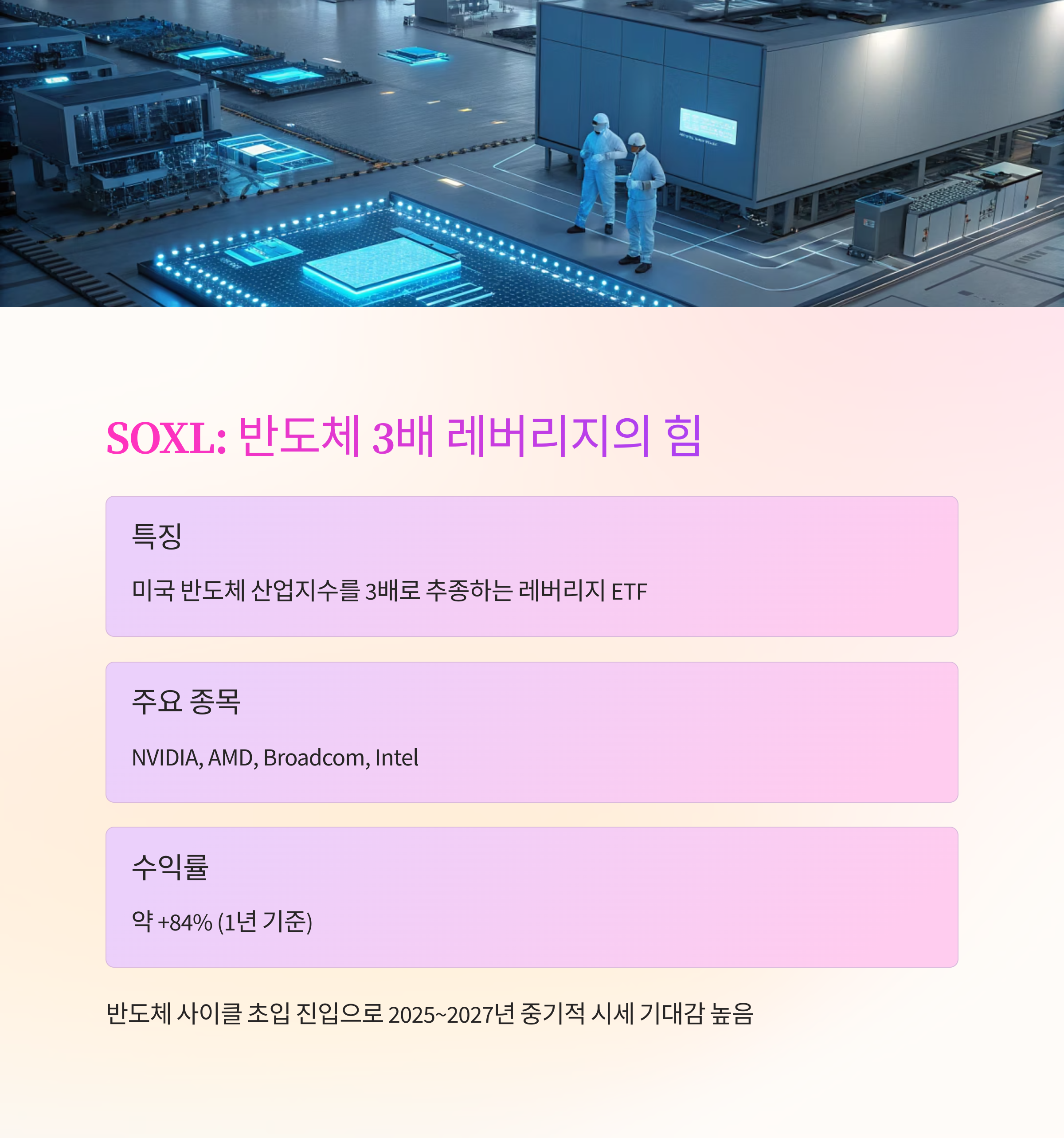 ① SOXL: 반도체 3배 레버리지, 고위험 고수익의 대표 ETF
