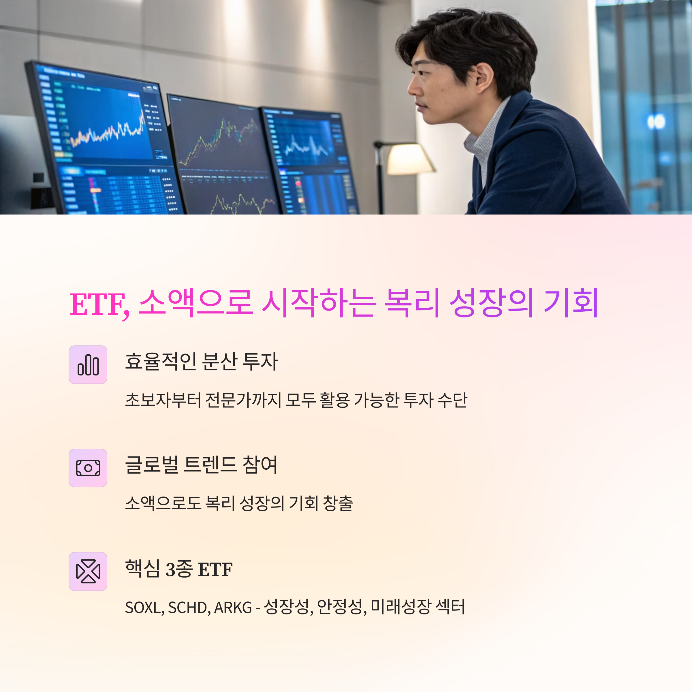 이 글에서는 SOXL, SCHD, ARKG 세 가지 ETF를