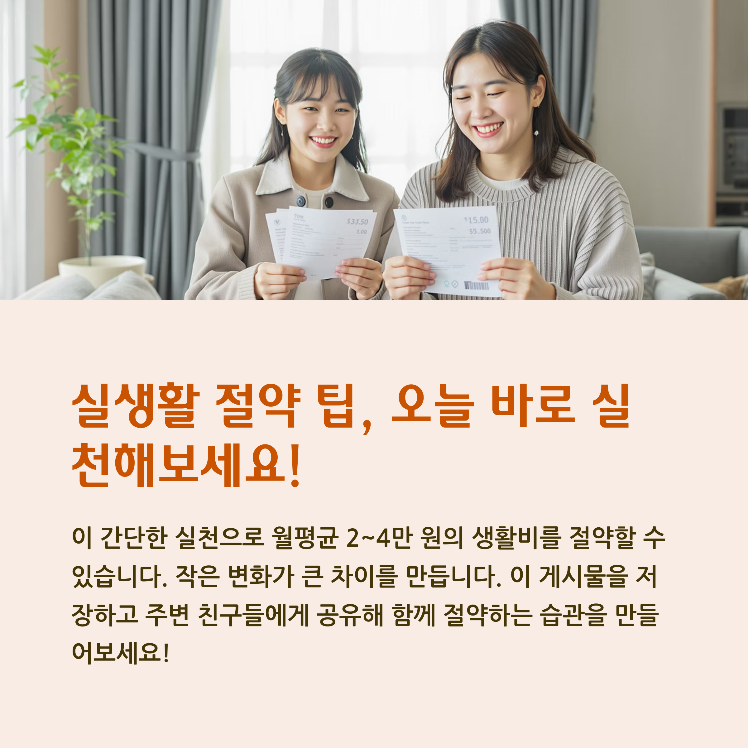 생활 속 작은 습관 변화가 큰 절약을 가져옵니다. 위의 10가지 생활 꿀팁을 하나씩 실천해 보세요. 절약이 어려운 것이 아닌, 자연스러운 '일상'이 되는 순간이 찾아올 거예요!