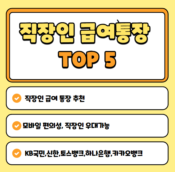 오늘은 직장인을 위한 급여통장 추천 TOP5를 소개합니다.